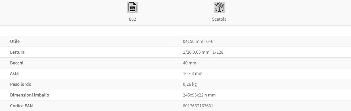 CALIBRO SATINATO 0÷150 mm / 0÷6" / Becchi 40 mm.
